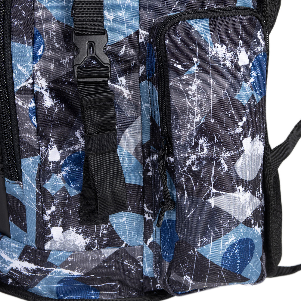 Plecak posiada przegrodę na laptopa oraz dodatkową boczną siatkową kieszeń na butelkę z wodą.
