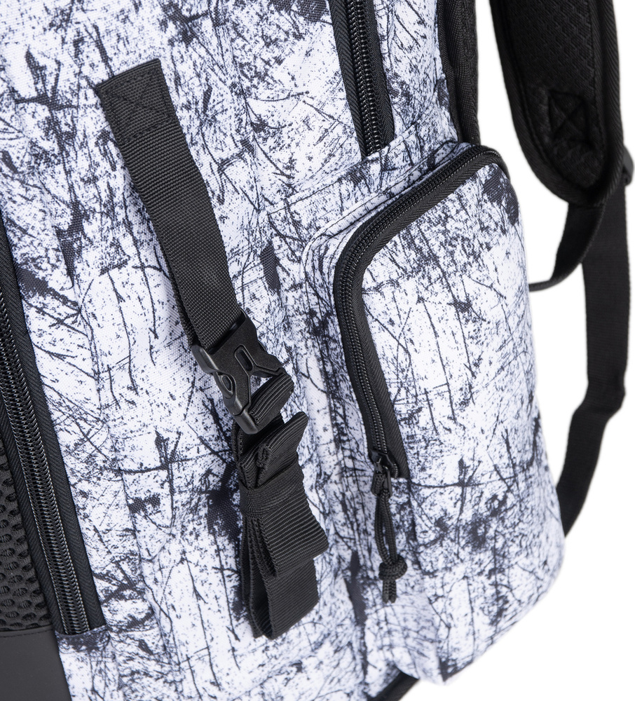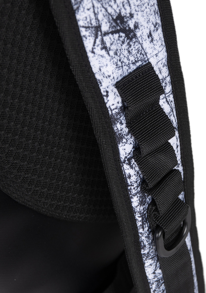 Plecak posiada przegrodę na laptopa oraz dodatkową boczną siatkową kieszeń na butelkę z wodą.