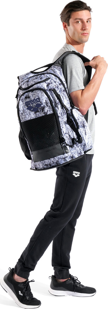 Wyposażony w system aquabreathe, nową technologię zarządzania wilgocią marki arena, łączy oddychające wstawki i hydrofobowe tkaniny, tworząc zaawansowany system wentylacji, który chroni sprzęt przed wodą i utrzymuje go suchym.