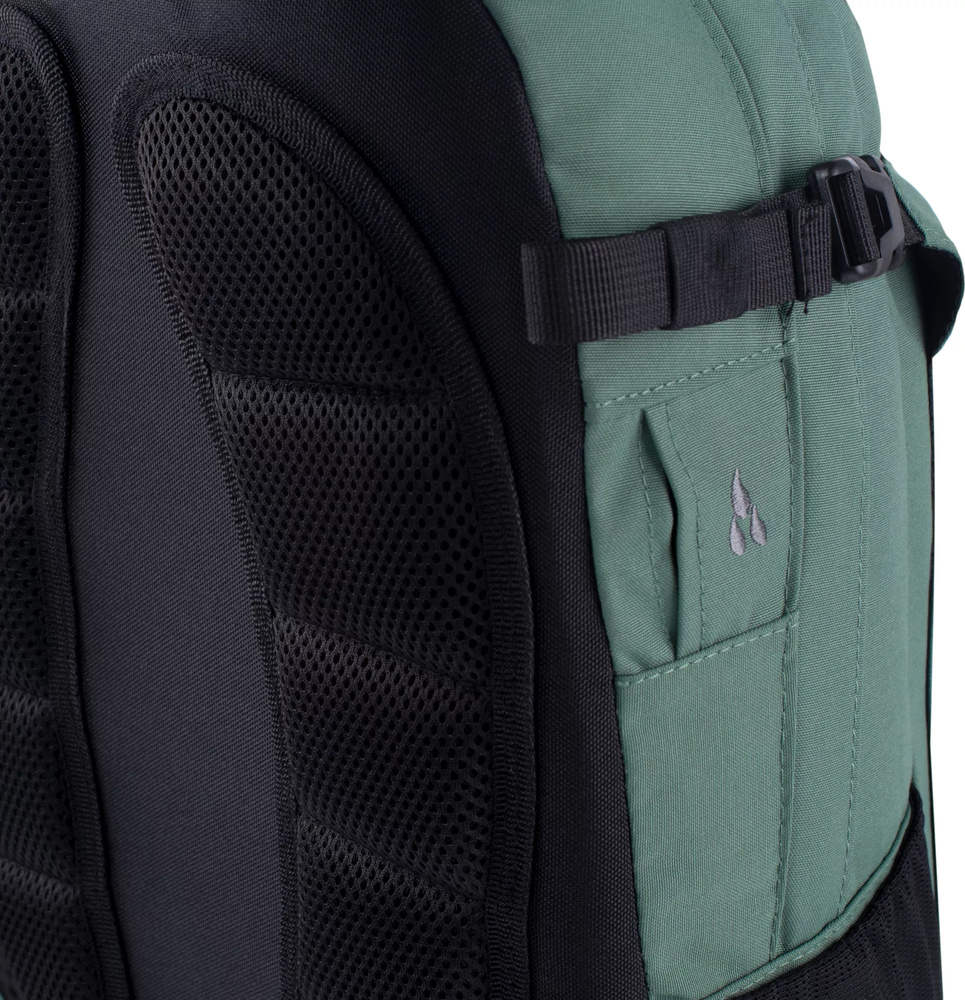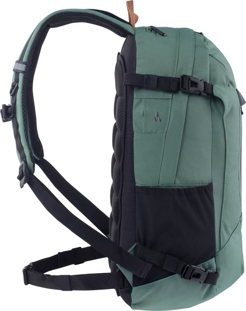 Plecak reviver posiada dodatkową kieszonkę na froncie oraz dwie siateczkowe kieszonki, w których zmieści się butelka z wodą lub termos.