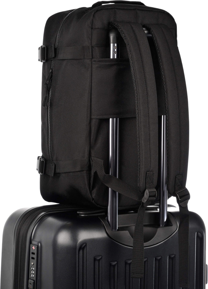 Specjalnie zaprojektowany uchwyt do mocowania plecaka na rączce walizki znacznie usprawni przemieszczanie się z bagażami. Ergonomiczne zapięcia i regulowane szelki pozwalają na indywidualne dopasowanie do sylwetki użytkownika.