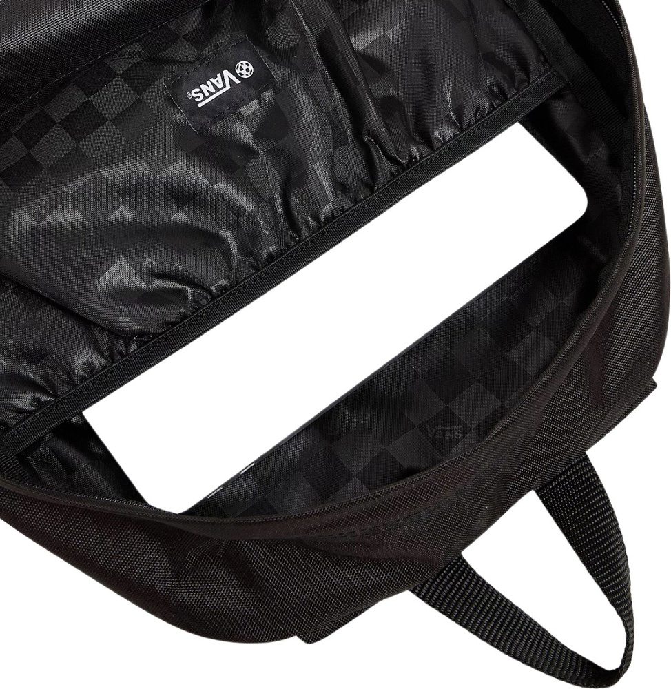 Przód plecaka zdobi klasyczne logo Vans, nadając mu charakterystycznego stylu.