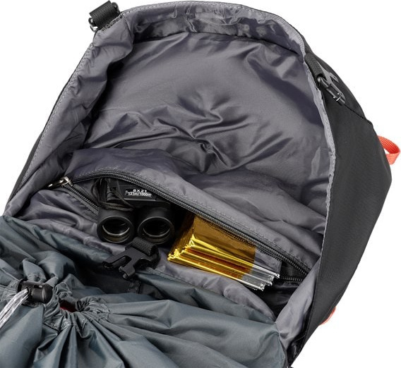 Modularna budowa plecaka pozwala na niezależne dostosowanie dolnej i górnej części głównej komory, co ułatwia organizację i dostęp do zawartości.