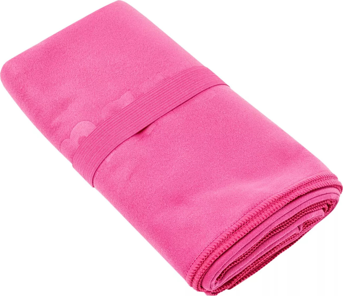 Gumowa opaska dołączona do ręcznika pozwala łatwo i szybko go zapakować.
