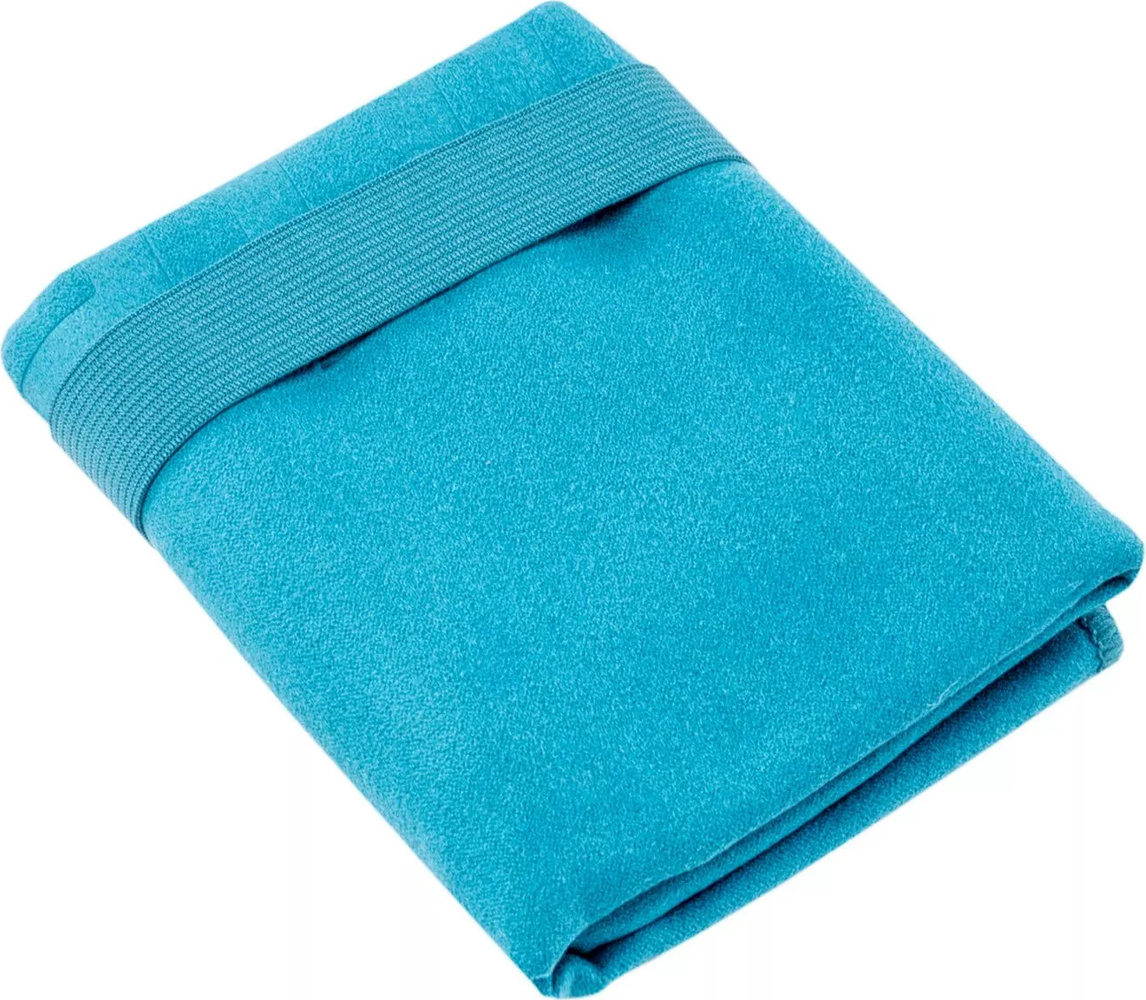 Gumowa opaska dołączona do ręcznika pozwala łatwo i szybko go zapakować.
