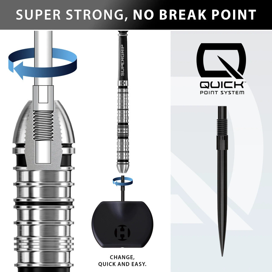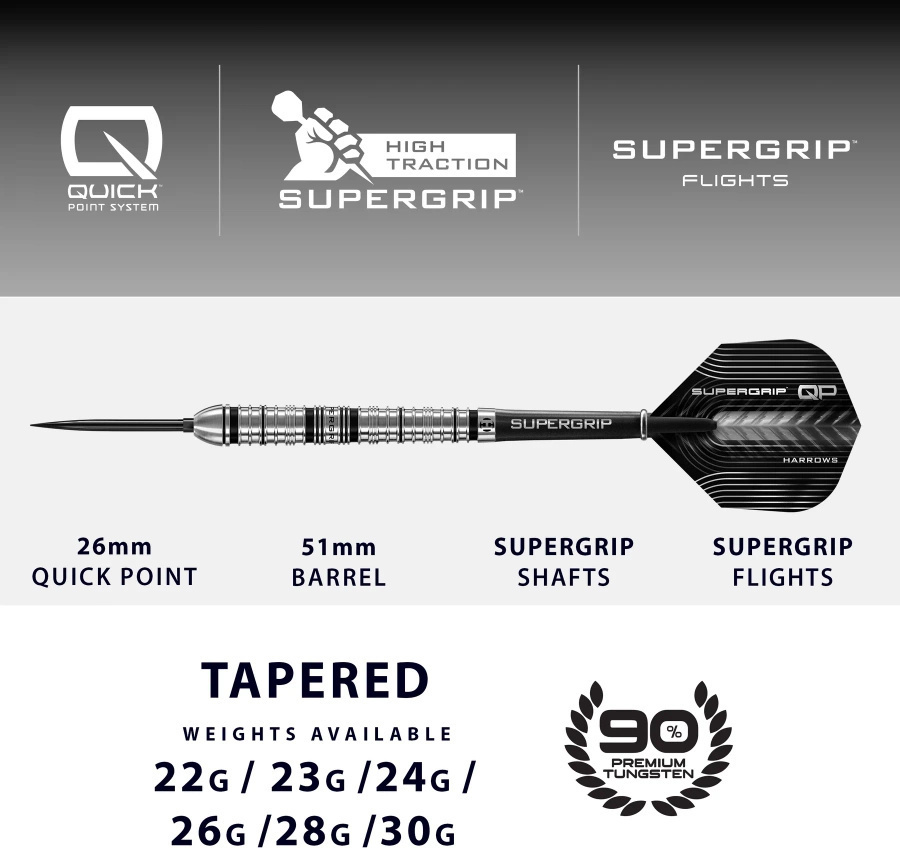 Supergrip QP 90% Steel Tip to nowoczesne rzutki, które łączą niezrównany chwyt, trwałość i elegancję.