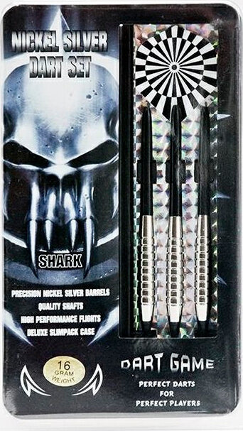 Wysokiej jakości zestaw trzech rzutek typu SOFTIP do darta. Produkt przeznaczony dla amatorów oraz profesjonalnych zawodników. Czarne etui z tworzywa skrywa trzy niklowane beczki (barells) z wkręcanymi, nylonowymi grotami. Beczki wyposażono w nylonowe nasadki (shafts). Zestaw zawiera także komplet piórek z kolorową grafiką.