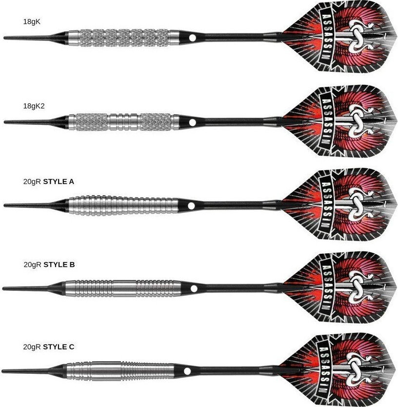 Bardzo popularne modele, szeroki wybór stylów i ciężarów. Rzutki posiadają końcówki Softip i są przeznaczone do gry na tarczach elektronicznych.