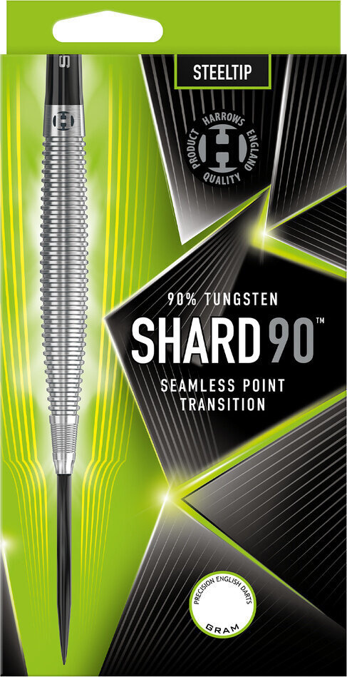 Rzutki Shard są dostarczane z trzonkami midi Black Supergrip, nowymi lotkami Shard o grubości 100 mikronów i ważą odpowiednio +/- 0,05 g.