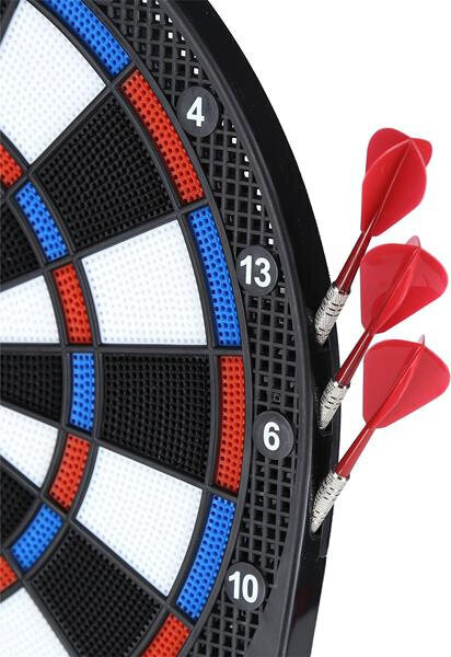 - W zestawie: Elektroniczna tarcza, 6x rzutek, 30x wymiennych końcówek, zestaw śrub montażowych, instrukcja obsługi
