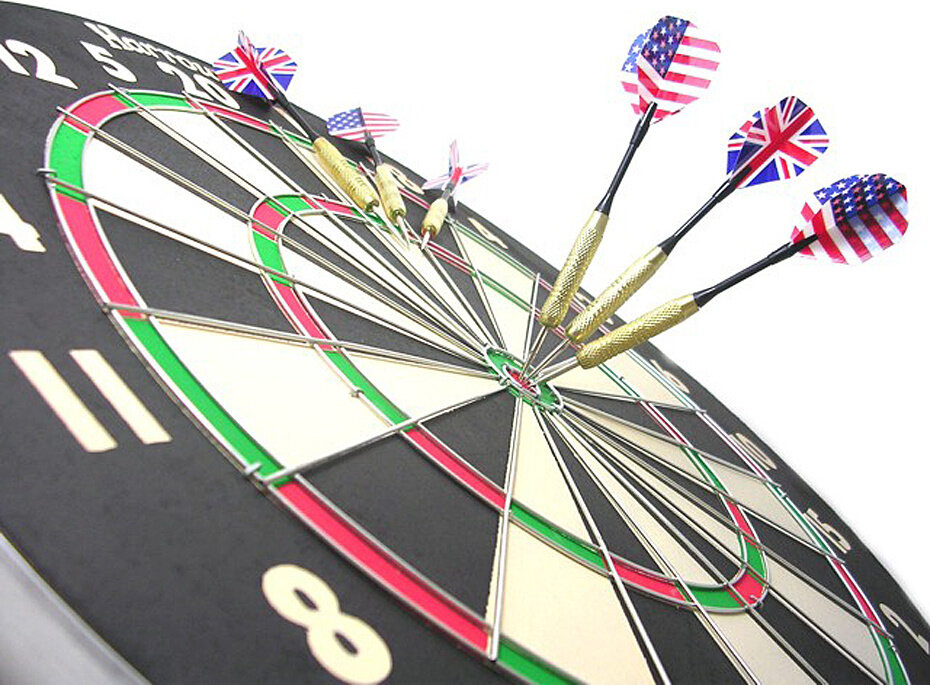 Tarcza wykonana ze sprasowanego papieru na rzutki ostre. KOMPLET ZAWIERA:- wieszak do montażu na ścianie- dwustronną tarczę- 6 profesjonalnie wykonanych rzutek / lotek Wymiary:46.7cm X 2.5cm Okucie tarczy oraz elementy konstrukcyjne dzielące jej pola, wykonane są z drutu o okrągłym przekroju wyznaczającym granice rzutu i zapewniającym jej stabilność.