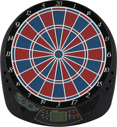 Dane techniczne:· Wymiary: 43 x 46,5 x 3,5 cm· Ilość graczy 1 - 8· 29 trybów gry z 174 wariantami· Wyświetlacz LCD· 6 rzutek· Funkcja podwójnego bullseye i cyber match· Efekty dźwiękowe i głosowe· Możliwość zasilania bateryjnego (2x AA, brak z zestawie)· Zasilacz sieciowy w zestawie