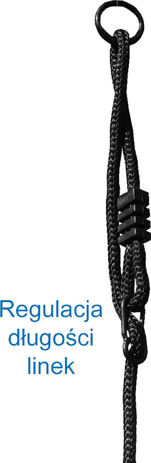 Regulacja linek w zakresie 1.4 - 1.9 metra daje możliwość dostosowania wysokości niebiesko-czarnej huśtawki do wzrostu, by maksymalnie ułatwić schodzenie i wchodzenie.