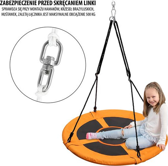 Przedstawiamy łącznik obrotowy do huśtawki NB5041, który skutecznie chroni przed skręcaniem się lin i pasów, podczas dynamicznego użytkowania huśtawki. Łącznik, sprawdzi się również w przypadku zawieszenia hamaka.
