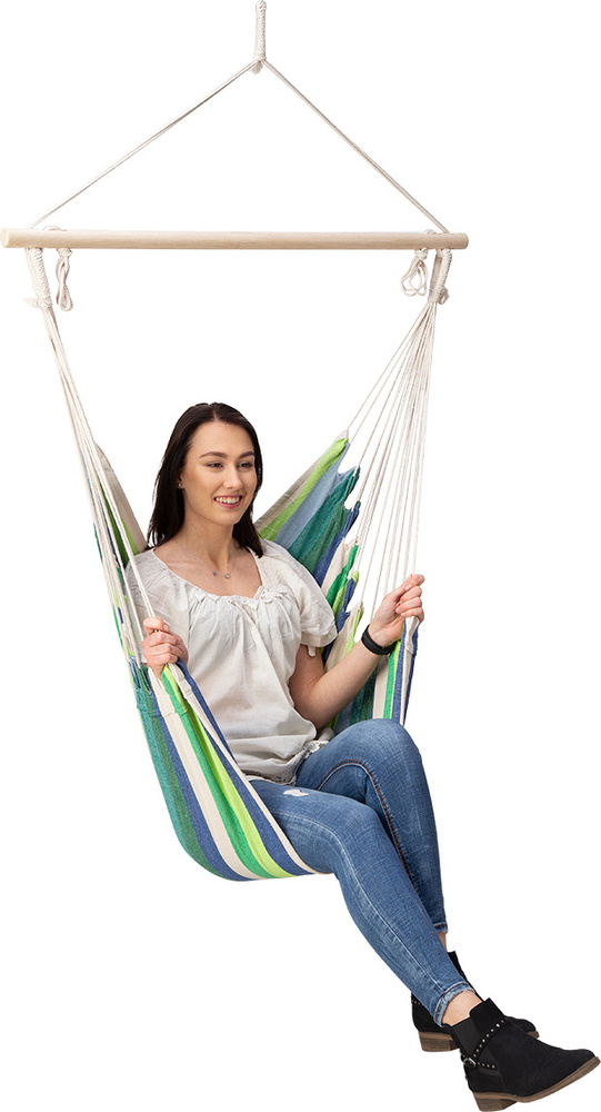 W połączeniu, z grubo plecionymi, mocnymi linami, solidnym drewnianym stelażem oraz metalowym uchwytem, otrzymujemy maksymalne dopuszczalne obciążenie, na poziomie 120 kg.