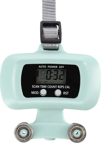 HHM14 wyposażony jest w duży wyświetlacz LCD, który pokazuje takie dane jak: czas treningu, ilość spalonych kalorii oraz ilość wykonanych powtórzeń (obrotów).