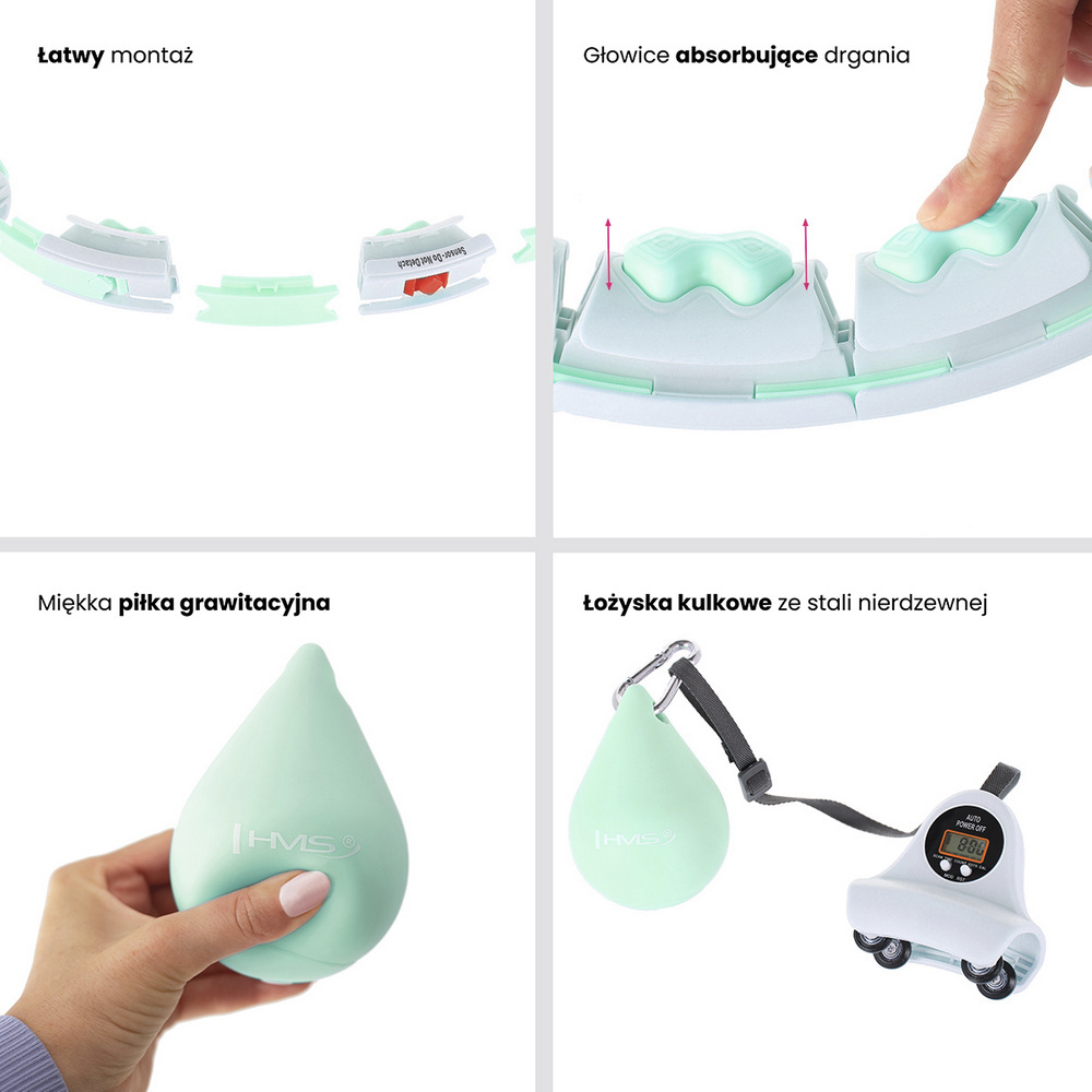 HHW06 HMS to regulowany hula-hoop z absorbującymi drgania wypustkami i piłką grawitacyjną do fitnessu.