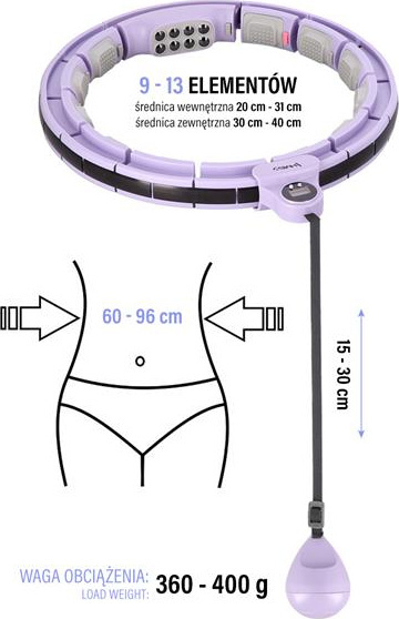 Koło hula hop fioletowy z magnesami i obciążnikiem licznik HMS HHM13