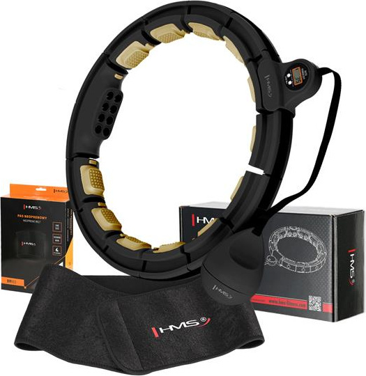 Zestaw Hula hop magnetyczny czarno-złote HHM13 z licznikiem HMS pas wyszczuplający BR163