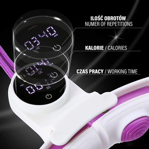 Wyposażony w nowoczesny cyfrowy wyświetlacz, HHM17 pozwala na ciągły monitoring osiągów treningowych, prezentując takie dane jak czas trwania ćwiczeń, spalone kalorie oraz liczba wykonanych obrotów.