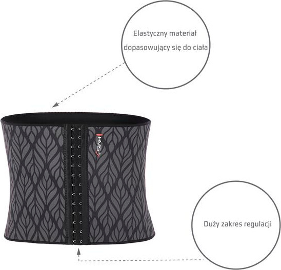 Gorset ma regulowany obwód, dzięki czemu możesz go dostosować do swojego ciała i zmieniać go wraz z postępami w odchudzaniu.