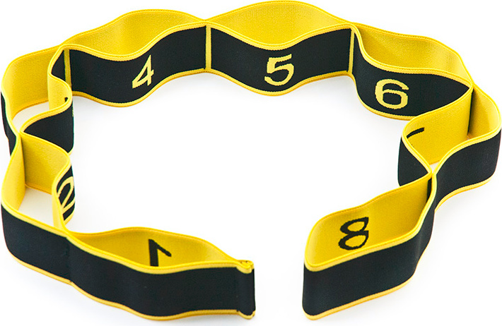 To elastyczny pasek / opaska fitness / taśma gimnastyczna z 8 pętlami/sekcjami używana do jogi, tańca, terapii fizycznej, gimnastyki, baletu, treningu, rehabilitacji i rozciągania.