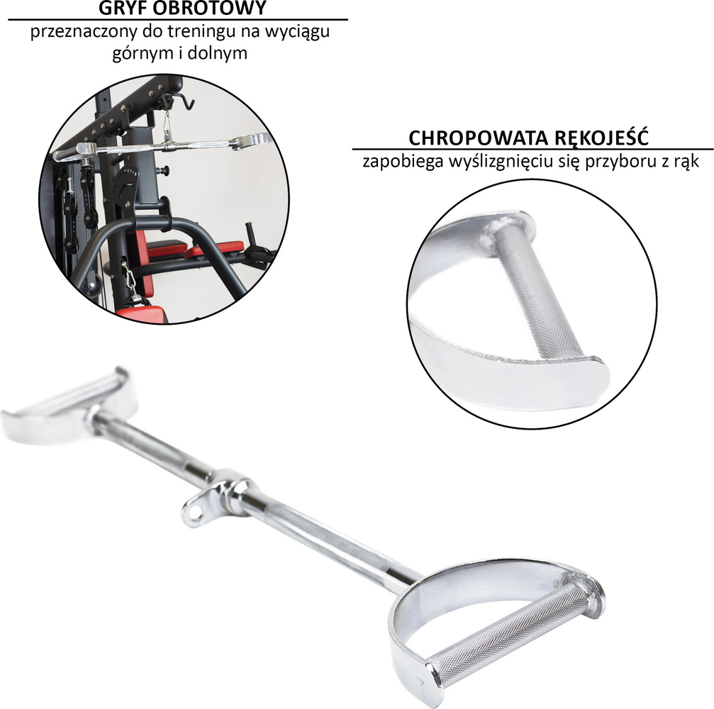 UW16 HMS to gryf obrotowy przeznaczony do treningu na wyciągu górnym i dolnym.