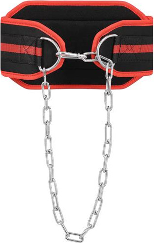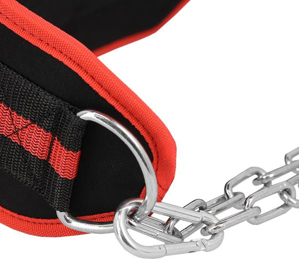 Stalowy łańcuch, który przymocowany jest do pasa, pozwala na zawieszenie obciążników.