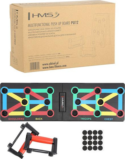 PU12 marki HMS, to innowacyjna i wielofunkcyjna deska, służąca do wykonywania ugięć ramion w podporze przodem, czyli tzw. pompek.