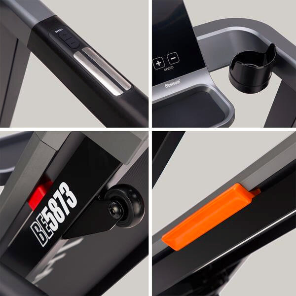 Dzięki regulacji prędkości i nachylenia, mocnemu silnikowi oraz licznym programom treningowym, model BE5873 pozwala na wszechstronny i efektywny trening.