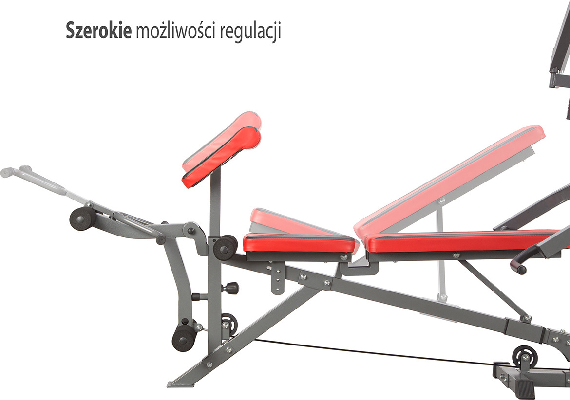 Pleciona linka stalowa gwarantuje wytrzymałość do 1000kg, natomiast regulacja kąta nachylenia ławki wynosi: (-25°÷-90°).