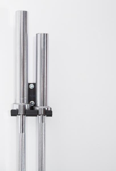 Ostatnim elementem zestawu jest uchwyt mocowany do ściany, na którym można zawiesić dwa gryfy.