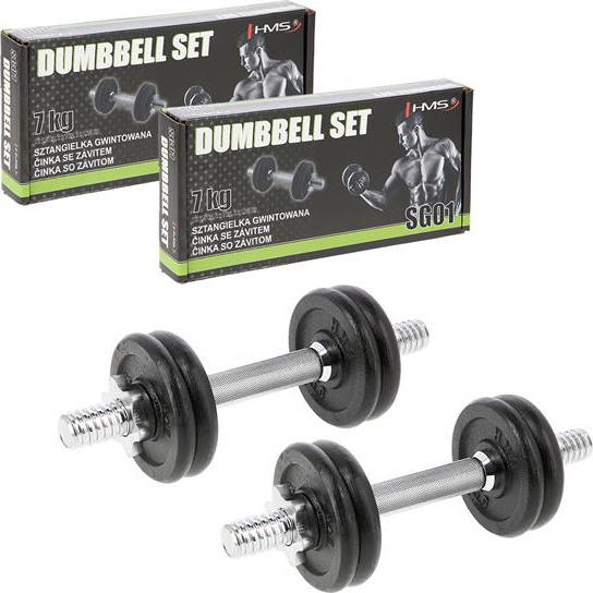 SG02 HANTLE ŻELIWNE 2x7KG HMS, czyli klasyka, a zarazem niezbędnik każdej domowej siłowni.