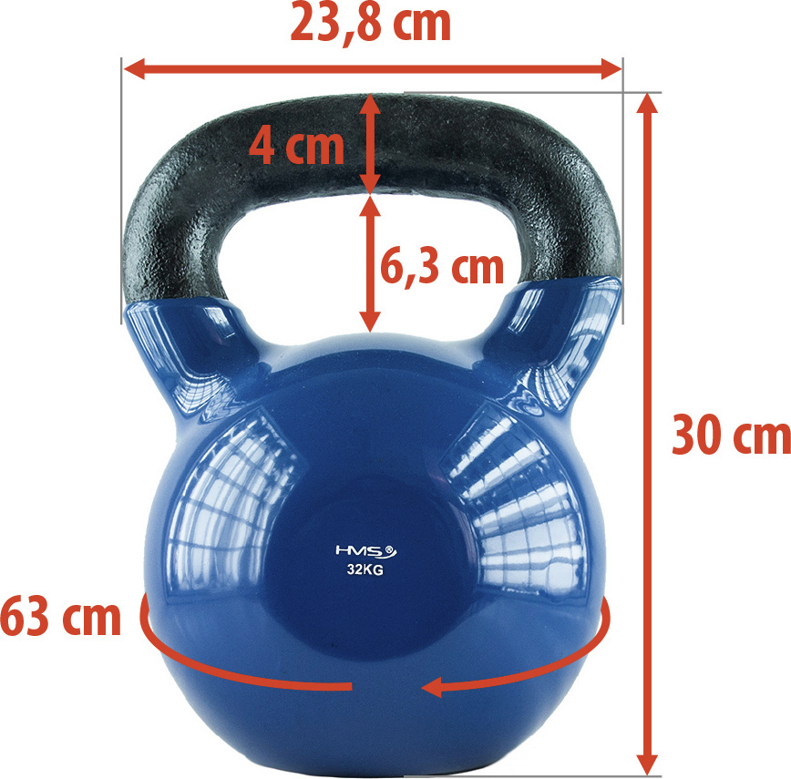 KNV HMS, to rodzina ciężarków Kettlebell wykonanych z wysokiej jakości żeliwa, pokrytych winylem i zaopatrzonych w solidny uchwyt.