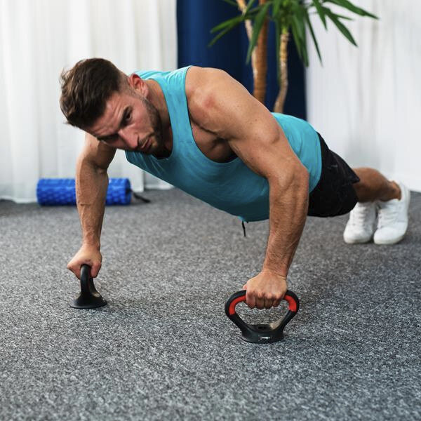 Możesz wykonywać różne rodzaje pompek, zmieniając ustawienie uchwytów i kąt nachylenia ciała.