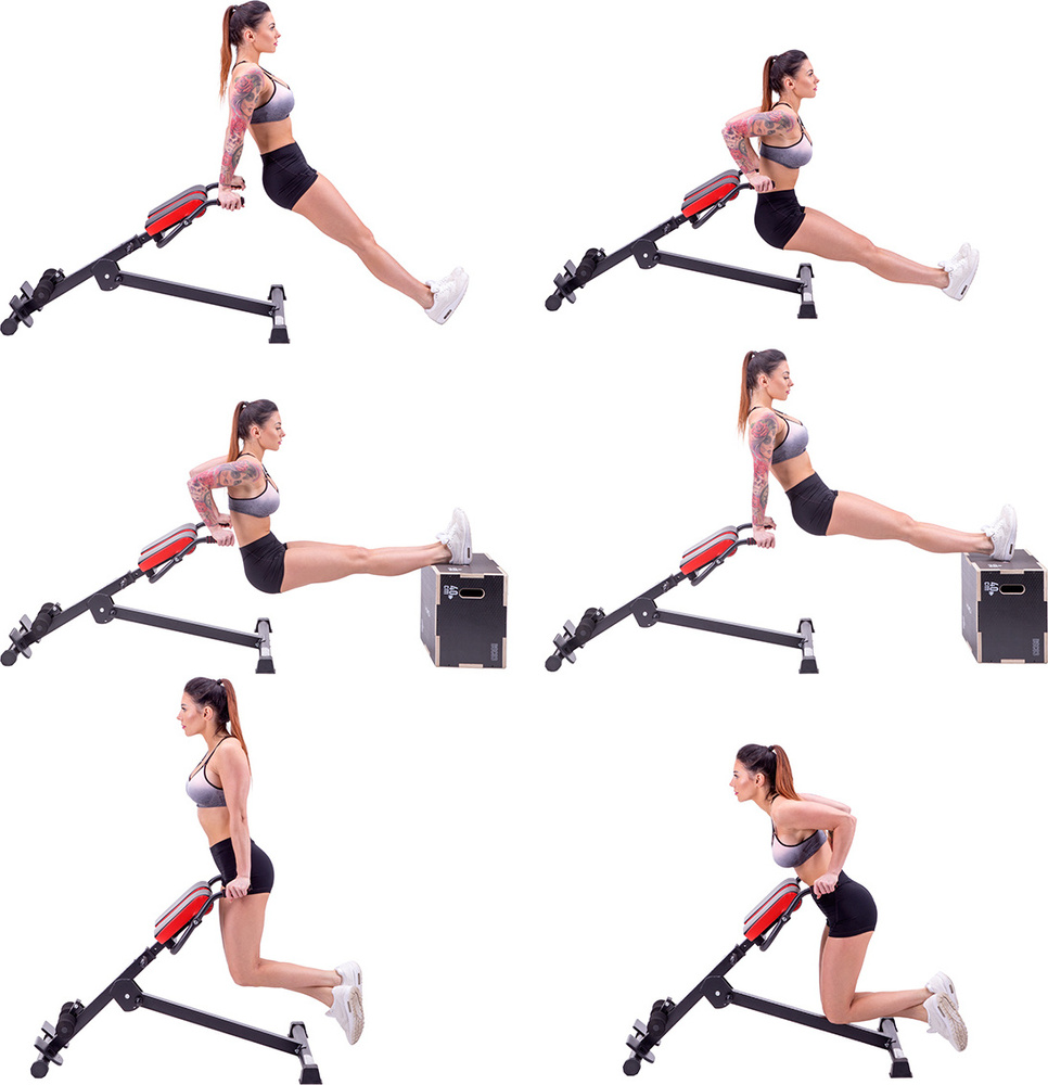 Im większy skłon tułowia tym większe zaangażowanie mięśni do pracy. Ławeczkę można wykorzystać także do ćwiczenia mięśni brzucha.