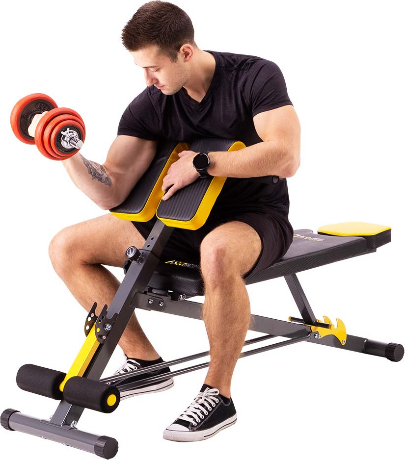 Nie możemy zapomnieć o tym, że ustawiając ławeczkę skośnie w dół, możliwe jest wykonanie skłonów czyli tzw. brzuszków.