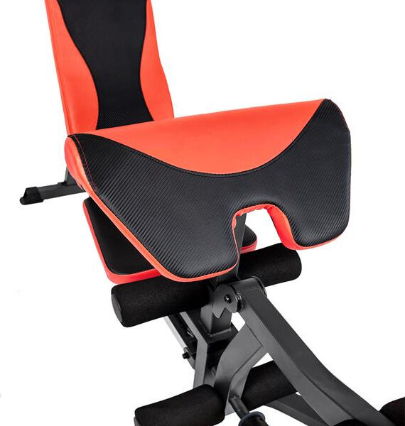 Komfort gwarantuje wytrzymała gąbka oraz nowoczesna tkanina obiciowa o karbonowym wzorze i podwyższonej trwałości, dzięki czemu nie użytkownik nie jest narażony na otarcia podczas wykonywania ćwiczeń.