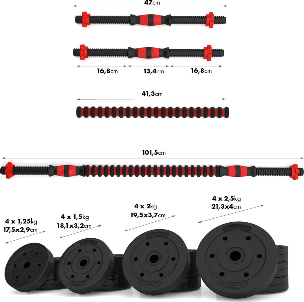 Sztanga gryf z obciążeniem sztangielki / hantle kompozyt HMS SGP30 30 kg