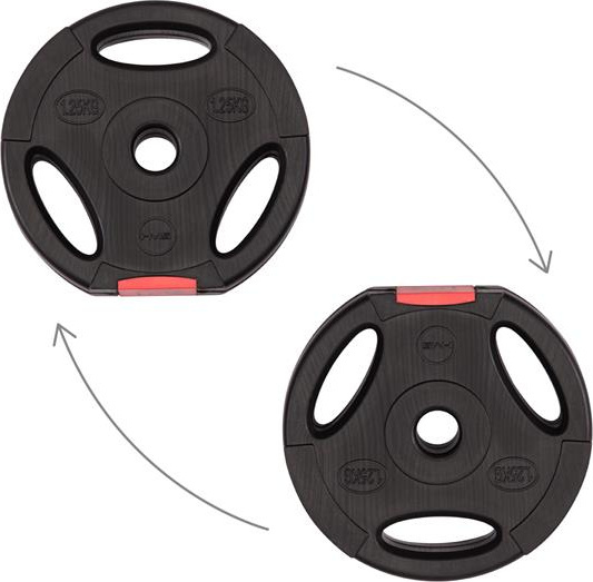 Zaciski gwiazdowe, oraz idealnie dopasowana średnica otworu talerzy, ułatwiają szybką zmianę obciążenia, a zarazem pewne i stałe ułożenie na gryfie.