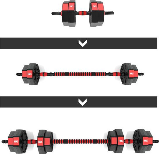 Nie może w niej zabraknąć SGC15 HMS, czyli zestawu dwóch kompozytowych sztangielek, które dodatkowo mają możliwość złączenia, dzięki czemu otrzymujemy sztangę.
