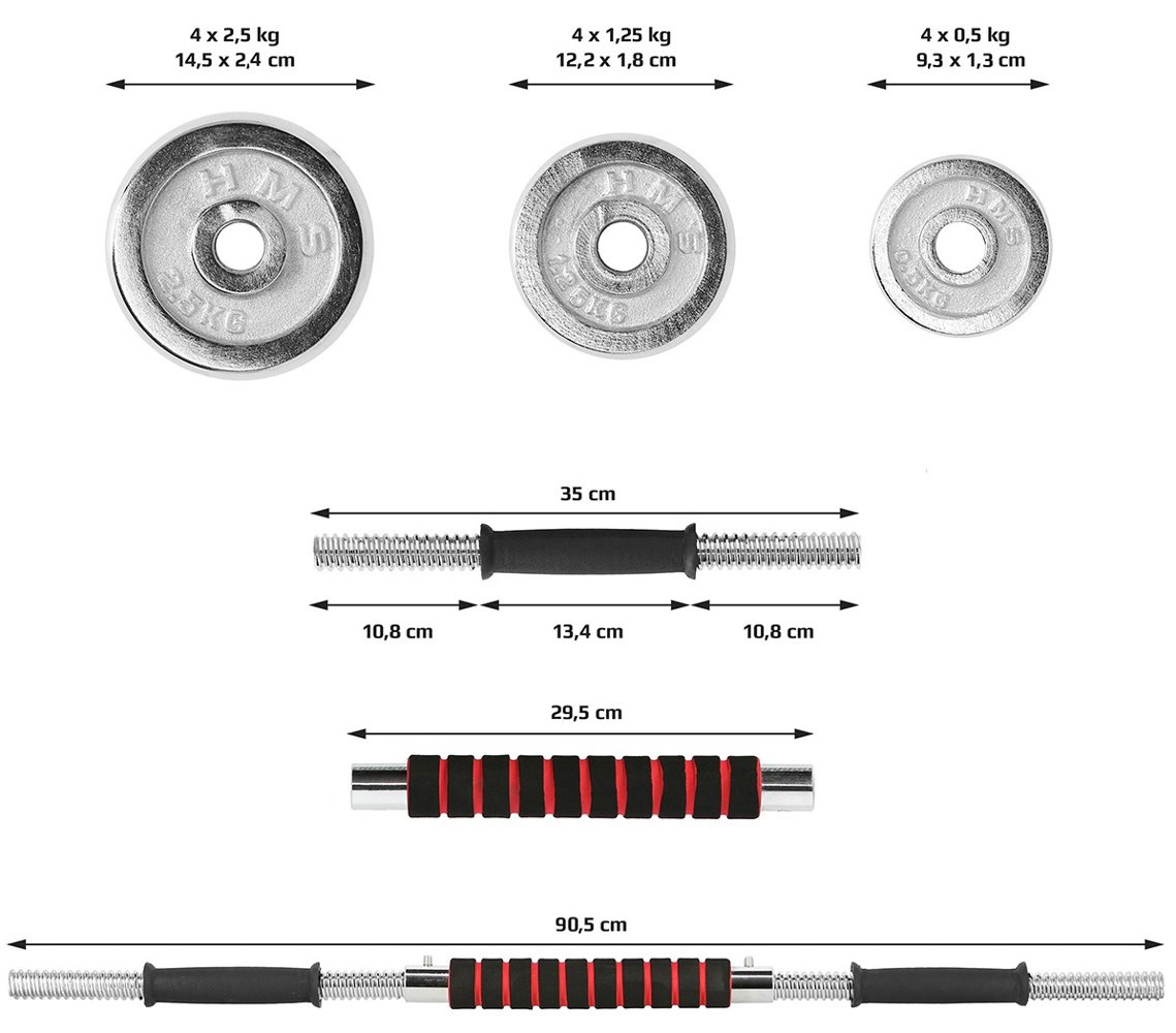 Sztangielki/sztanga w walizce stal chromowana HMS STC21 2x10 KG