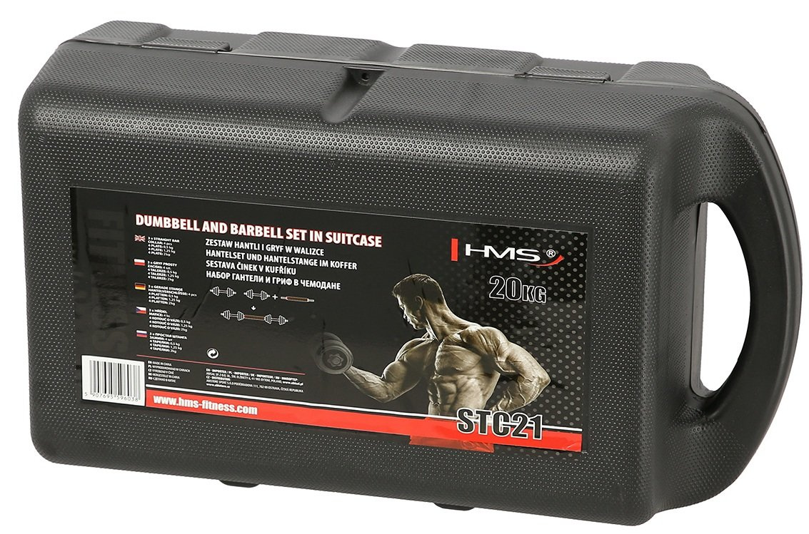 STC21 HMS, to zestaw dwóch sztangielek z wymiennym obciążeniem, z których dzięki specjalnemu łączeniu, można stworzyć sztangę. Takie innowacyjne rozwiązanie, pozwala na oszczędność miejsca oraz znacznie rozszerza wachlarz możliwości ćwiczebnych, względem zwykłego zestawu sztangielek. Sam proces przekształcenia sztangielek w sztangę, jest bardzo prosty i nie zajmuje dużo czasu. Mając do dyspozycji zestaw STC21 HMS, możliwe jest wykonanie ćwiczeń na wszystkie grupy mięśniowe w różnych konfiguracjach.