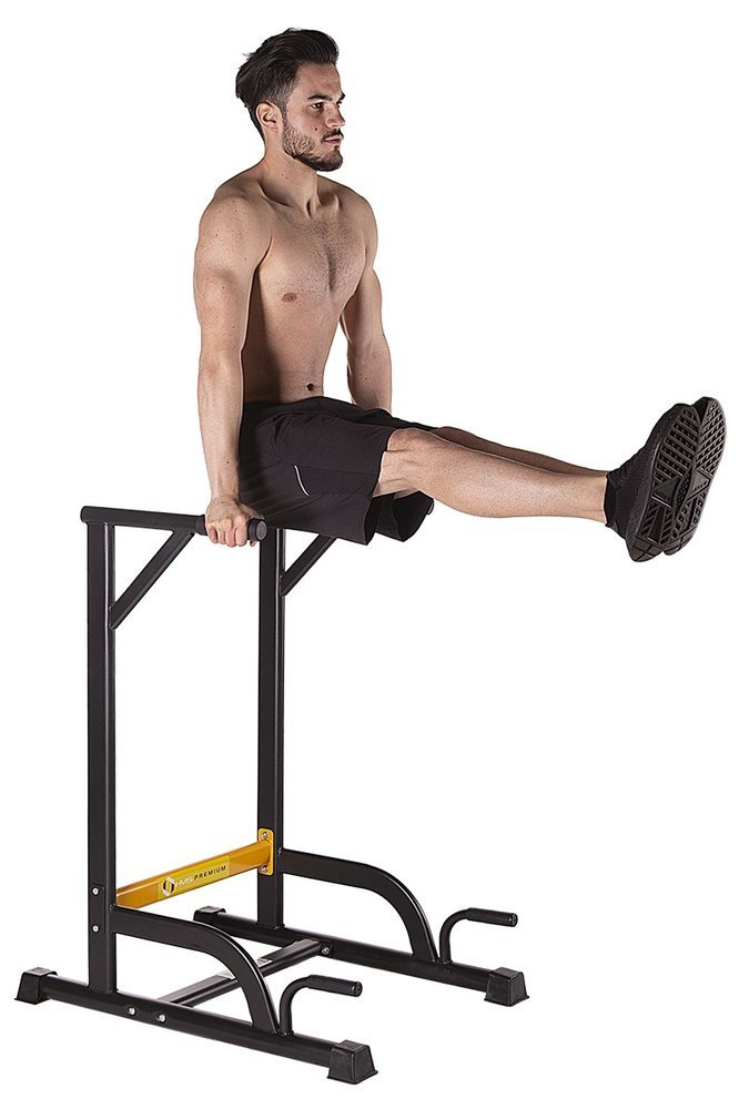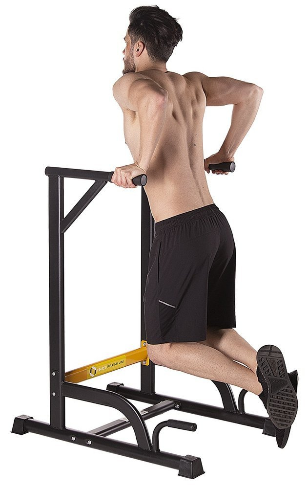 PWL8306 HMS PREMIUM to poręcz wielofunkcyjna. Jej zastosowanie, skupia się na wykonywaniu pompek na poręczach, czyli tzw. dipów oraz pompek klasycznych. Zarówno dipy, jak i klasyczne ugięcia ramion w podporze, bardzo mocno angażują mięśnie klatki piersiowej, tricepsy oraz przedni akton mięśni naramiennych. Dzięki dolnym uchwytom, możliwe jest wykonanie, bardzo mocnego ugięcia ramion w trakcie wykonywania pompki. Dzięki temu, dużo mocniej rozciągamy mięsień w trakcie każdego ruchu, co w rezultacie wpływa na jego szybszy wzrost. Na górnych poręczach, od ułożenia ciała zależy, czy mocniej zaangażujemy do pracy klatkę piersiową, czy triceps. Jeśli w trakcie ćwiczenia, pochylimy się do przodu, najmocniej zaangażowanym mięśniem będzie klatka piersiowa, jeśli jednak utrzymamy wyprostowaną pozycję, to skupimy się na tricepsie.