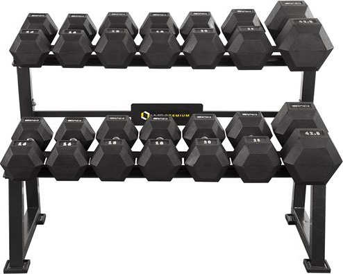 STR20 HMS PREMIUM, to stalowy, dwupoziomowy stojak na hantle.