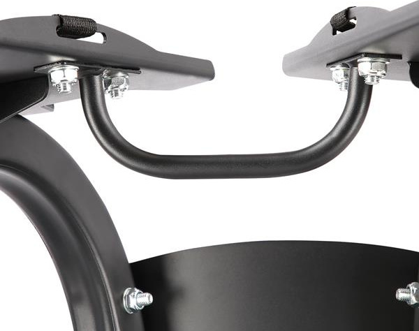 Paski zamontowane w stojaku oraz wyprofilowane końcówki miejsca na obciążenie zapobiegają zsunięciu się hantli.