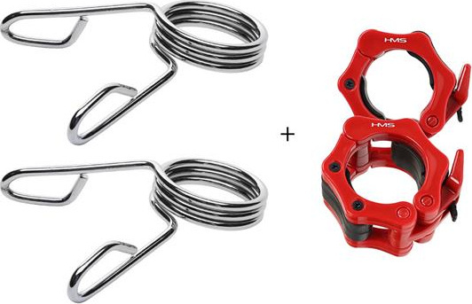 Dwa zaciski sprężynowe znajdujące się w zestawie, gwarantują stabilne położenie ciężaru na gryfie w czasie wykonywania ćwiczeń.