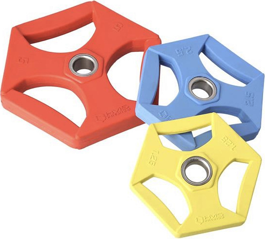 Co ważne, talerze mają heksagonalny kształt, który jest optymalny dla ćwiczeń fitness, ponieważ po odłożeniu czy odrzuceniu sztangi zapobiega jej niekontrolowanemu odtoczeniu się.