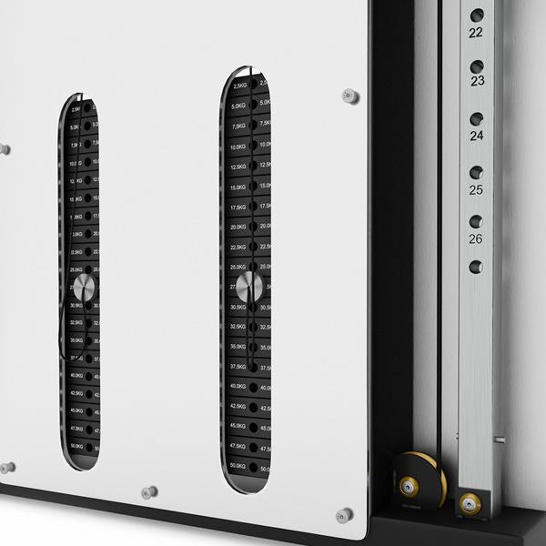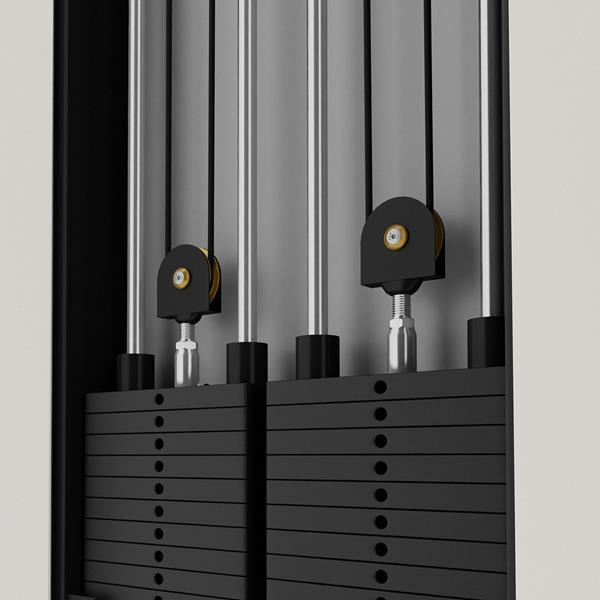 Każdy stos jest połączony z wyciągiem podwójnym, który umożliwia wykonywanie ćwiczeń na górne i dolne partie ciała.