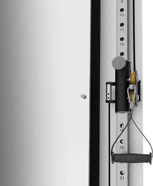 Brama ma 26-stopniową regulację wysokości linki stalowej, dzięki czemu możesz dostosować kąt i zakres ruchu do swojej budowy ciała i preferencji.